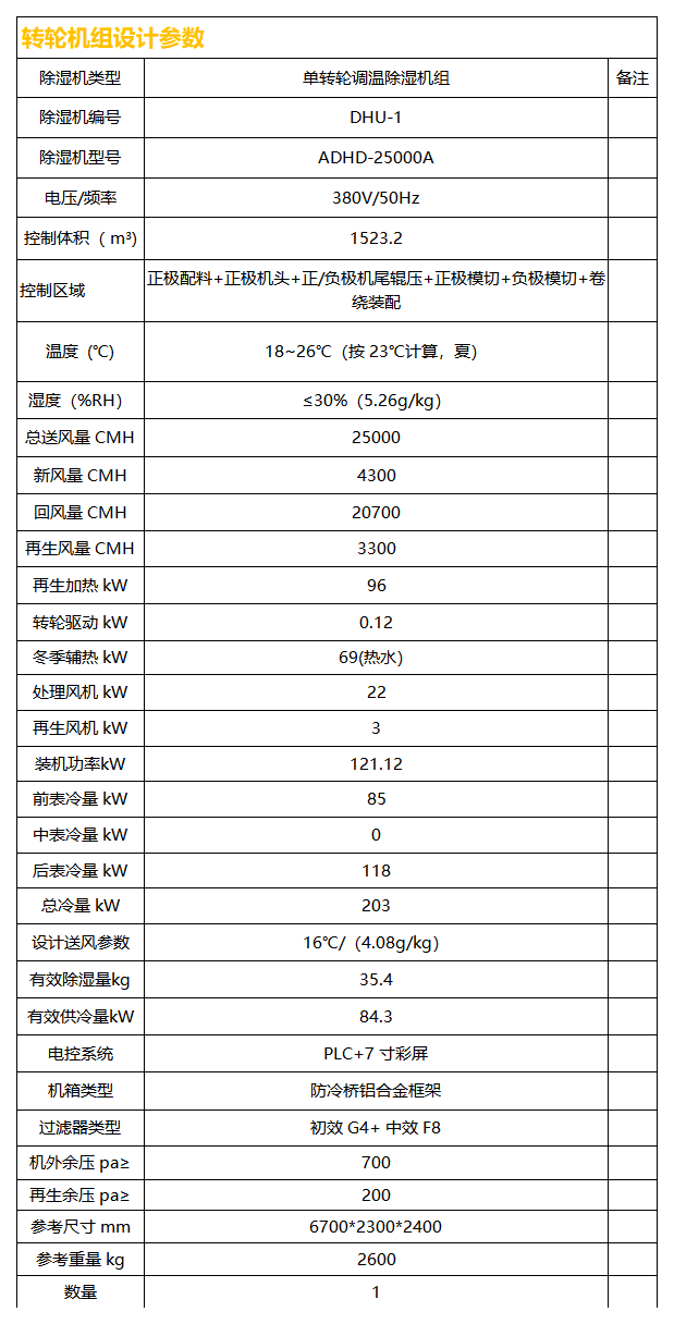 阿斯麥25000風(fēng)量單轉(zhuǎn)輪調(diào)溫除濕機(jī)組采用中高溫再生轉(zhuǎn)輪,其再生溫度在80℃-120℃時可穩(wěn)定運(yùn)行,以30%濕度的控濕能力,濕度反饋?zhàn)詣友埠剑詣诱{(diào)節(jié)再生加熱溫度,賦能鋰電池車間生產(chǎn)環(huán)境,為鋰電池保駕護(hù)航。