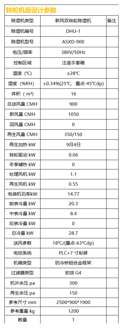④、二級轉輪采用后轉輪再生排風(高溫低濕空氣)作為前轉輪再生進風,可進一步節約轉輪除濕機組在再生方面的能耗,并優化前轉輪再生工況。